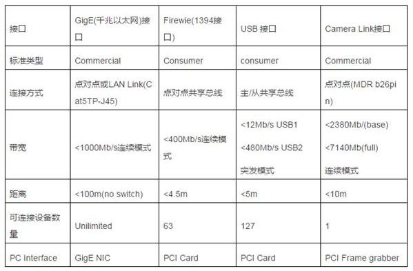 d、接口的匹配,確定相機與板卡的接口是否相匹配。如CameraLink、Firewire1394 等。